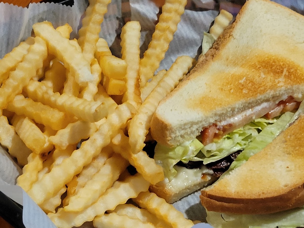 The burgers were very good . The crinkle cut fries are perfectly cooked . This place is not just bar food . They present a salad bar that was fresh . Macaroni salad was good . Pattymelt was very good . Everything is alacart, so it is easy not to waste food . Burgers 1/3 lb about $7 large fry $3 . And it was a large order salad bar with burger was $5 just salad bar was $8 .