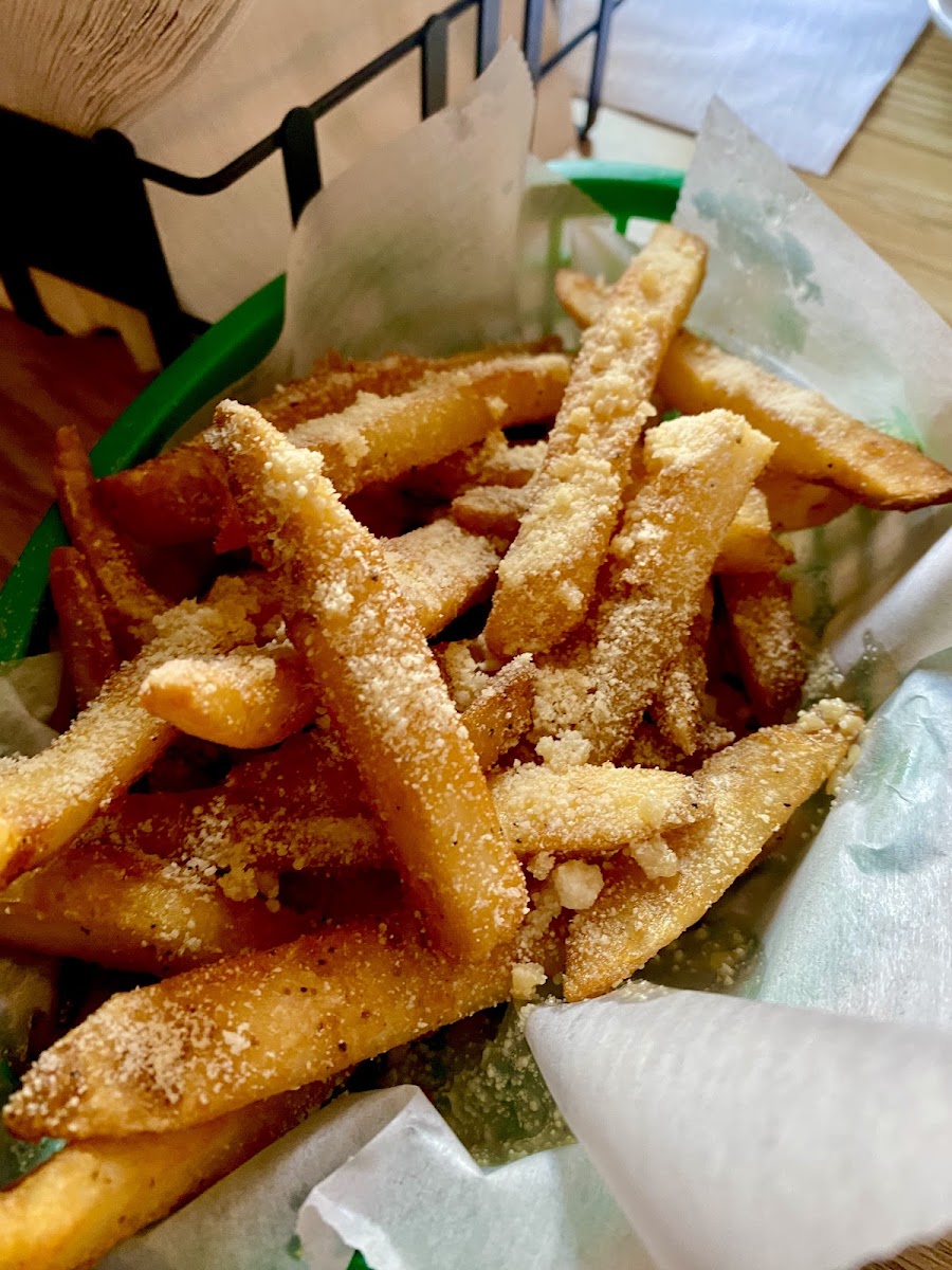 THE GARLIC PARM FRIES ARE TO DIE FOR!!!!!!!!! Homemade burger and bun was cooked exactly as ordered and the patty melt was perfect. Service was great. Prices were more than reasonable. DEFINETLY will make this a regular place to come and bring others. The owner and staff should be proud.